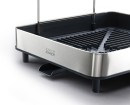 Ova ekskluzivna, vrhunski dizajnirana Duo 2-Tier Dish Rack - sušilica za sudove iz brenda JosephJoseph će vam omogućiti da prostor za sušenje sudova proširite ili smanjite po Vašim trenutnim potrebama. Sušilica je dizajnirana tako da možete da koristite jednu površinu za sušenje a po potrebi možete da je podignte na nogice i dobijate još jednu površinu iznad. Sušilica ima svoj integrisani odliv na dnu koji omogućava da višak vode lako odstranite. Držači od čelika presvučeni su zaštitnom silikonskom gumom protiv grebanja, pogodni su za sve vrste stakla i osetljivog posuđa. Sušilica je veoma stabilna i ne kliza se. Ova pametna sušilica sadrži poseban deo za sušenje pribora za jelo. Stalak za escajg je odvojiv od sušilice i lak za čišćenje. Cela sušilica se može demontirati radi lakšeg čišćenja. Duo 2-Tier Dish Rack - sušilica za sudove nije pogodna za pranje u mašini za pranje posuđa. Dizajn i funkcionalnost ovog proizvoda su prednosti koje trebate uzeti u obzir pri izboru svoje lične sušilice. Minimalistički dizajn će se veoma lako uklopiti u svaki moderno opremljen kuhinjski prostor. Ukoliko imate malo slobodnog kuhinjskog prostora ova sušilica je baš za Vas jer štedi kuhinjski prostor. Podizanjem sušilice na sprat dobijate dodatni prostor za sudove kada vam je potreban. Idealan poklon za male a moderne kuhinje.